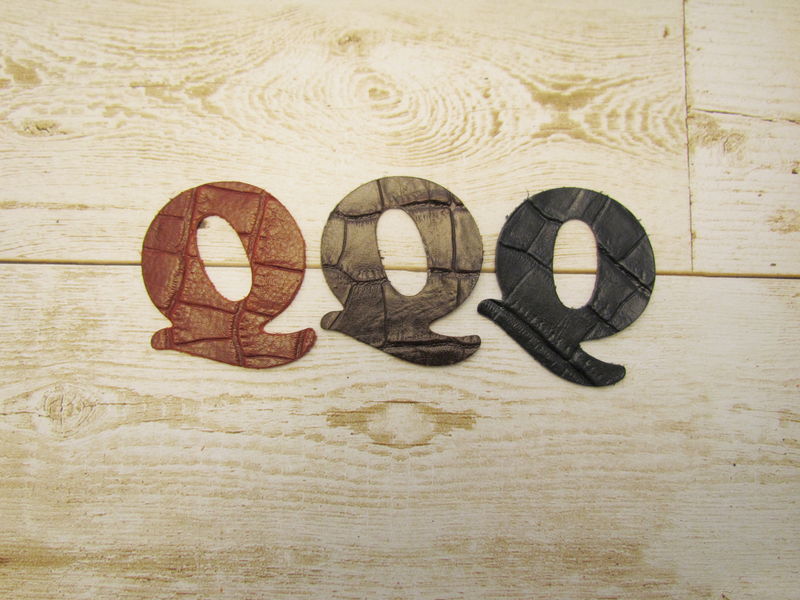 【革のはぎれパーツ】アルファベット・Q・大文字ダーク系(3枚セット)
