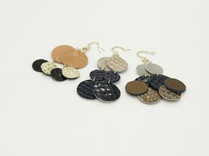 先日、発売されました珍しいピアスキットのご紹介です。例えばこちら○×ピアスキットのシックカラー。中にはいろんな形、カラーの本革のパーツが沢山、そしてピアス金具が3セット分入っております。